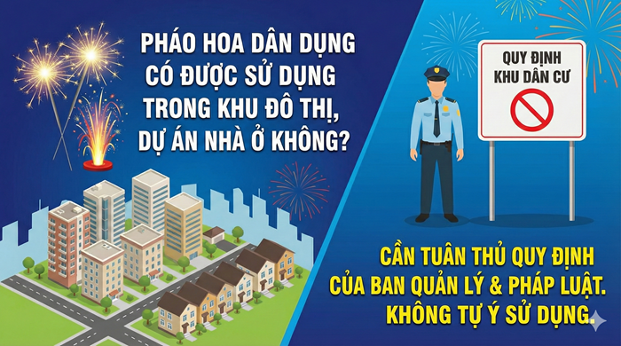 Như vậy, khu đô thị, dự án nhà ở không nằm trong danh mục cấm sử dụng pháo hoa dân dụng, miễn là việc sử dụng tuân thủ đúng các điều kiện an toàn và quy định nội khu.